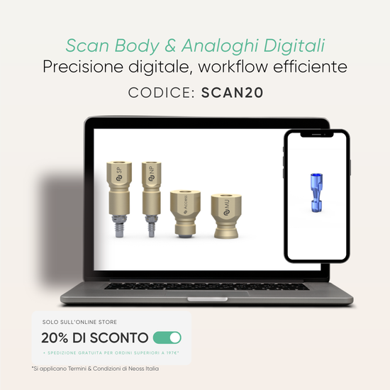 Per supportare il tuo flusso digitale, offriamo uno sconto del 20% su ScanBody Neoss & Analoghi Digitali Neoss.
